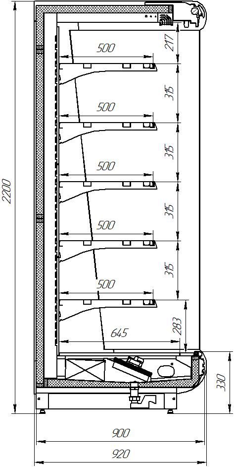 | Полезный объем витрины, м³ | 1,15 | 1,73 | 2,3 | 3,45 |