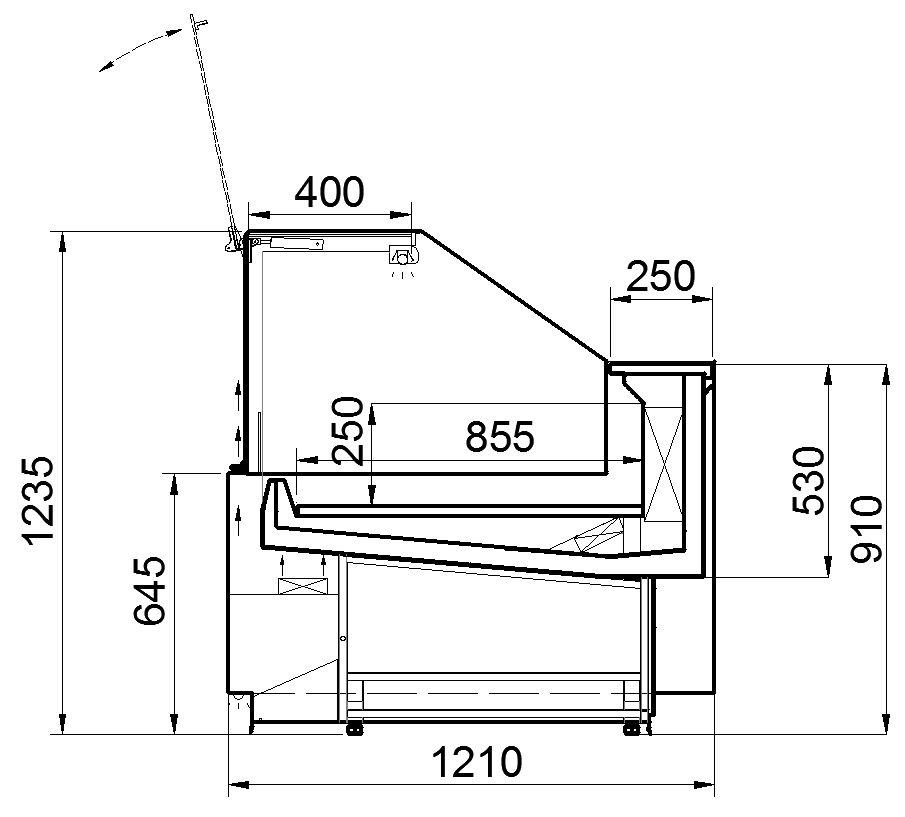 | Площадь выкладки продуктов, м2 | 0,8 | 1,07 | 1,6 | 2,14 | 3,21 | 1,5 | 0,94 | 1,39 | 1,65 | 0,81 | 1,62 |