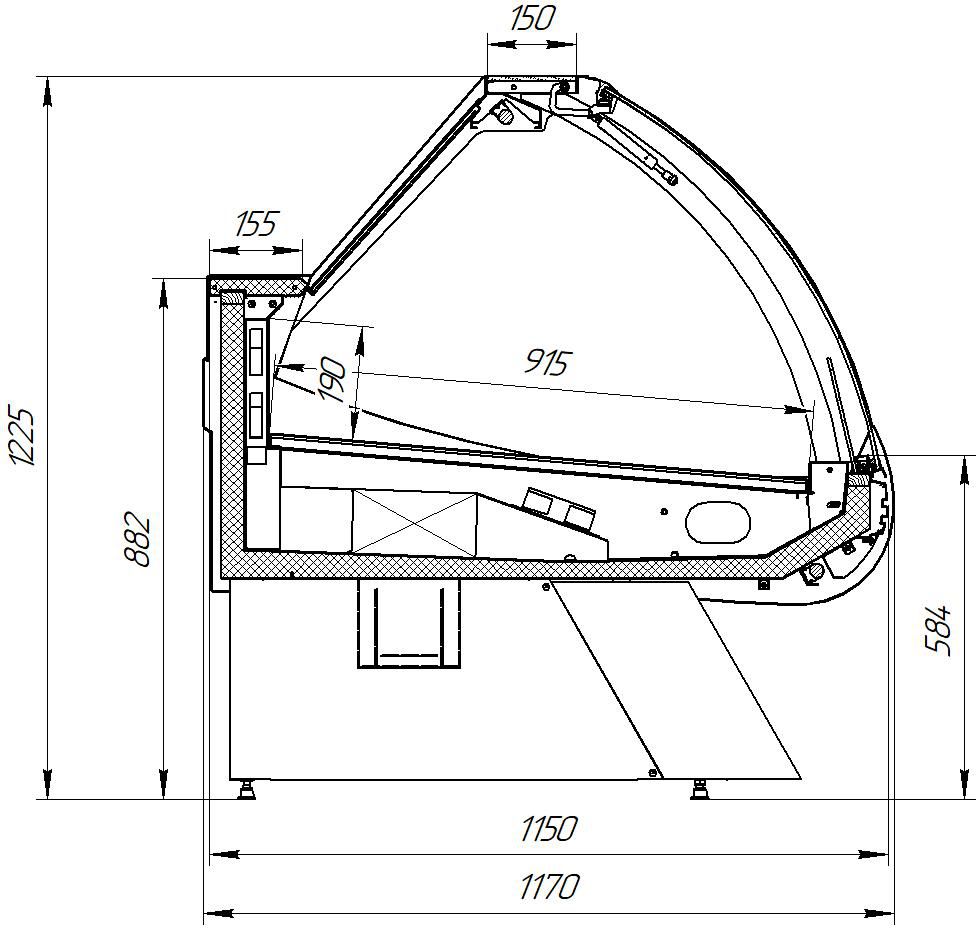| Полезный объем витрины, м³ | 0,22 | 0,33 | 0,43 | 0,65 |