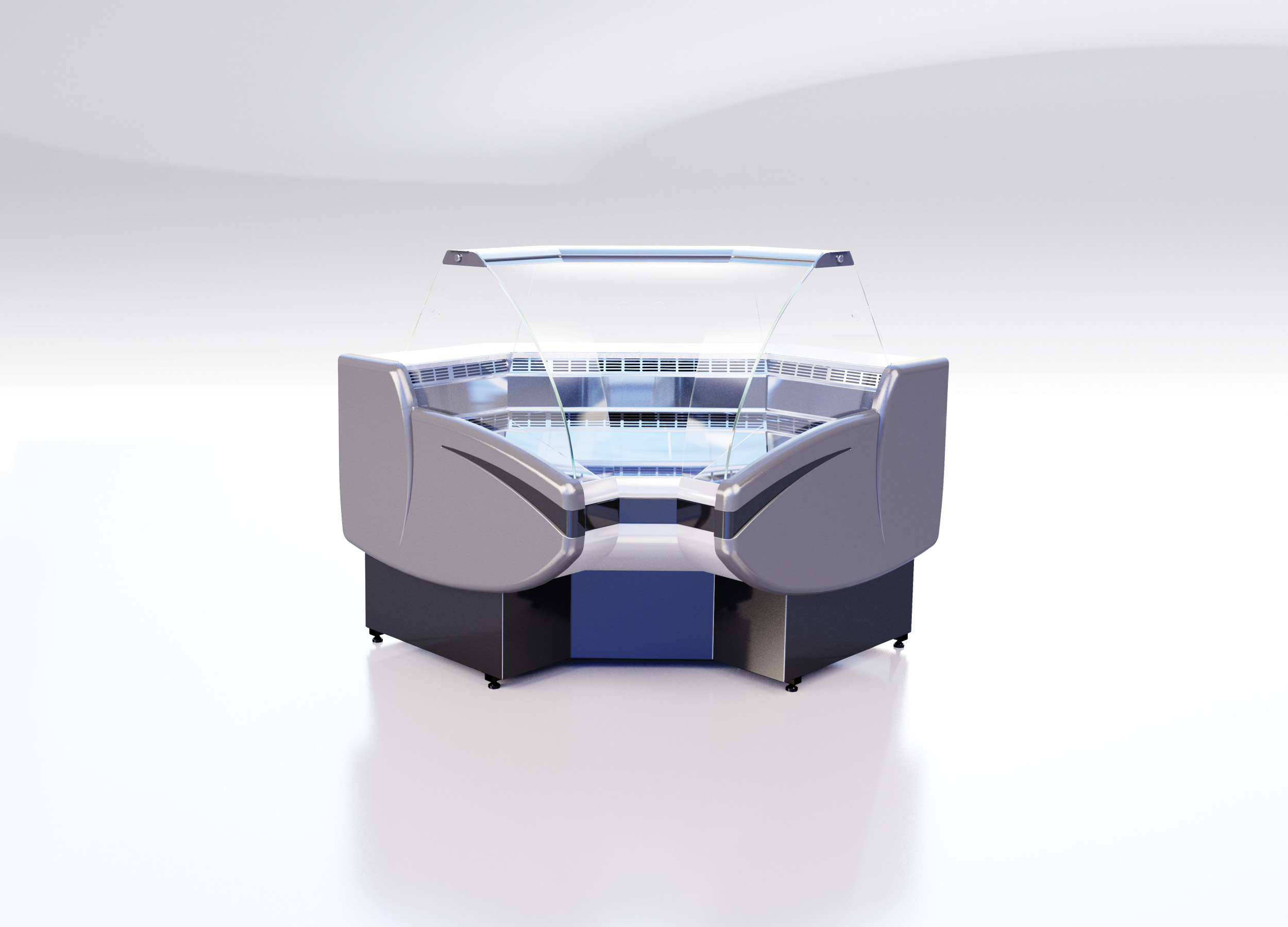 Витрина для выкладки соков и фруктов на льду